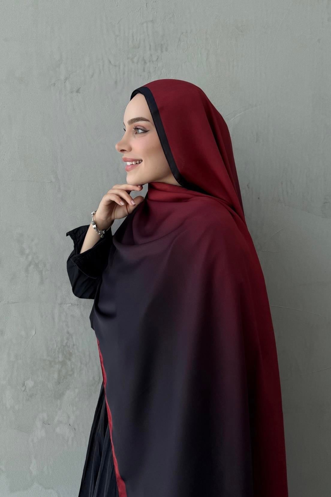 Bordo Degrade İpek Şal (EU-0618)