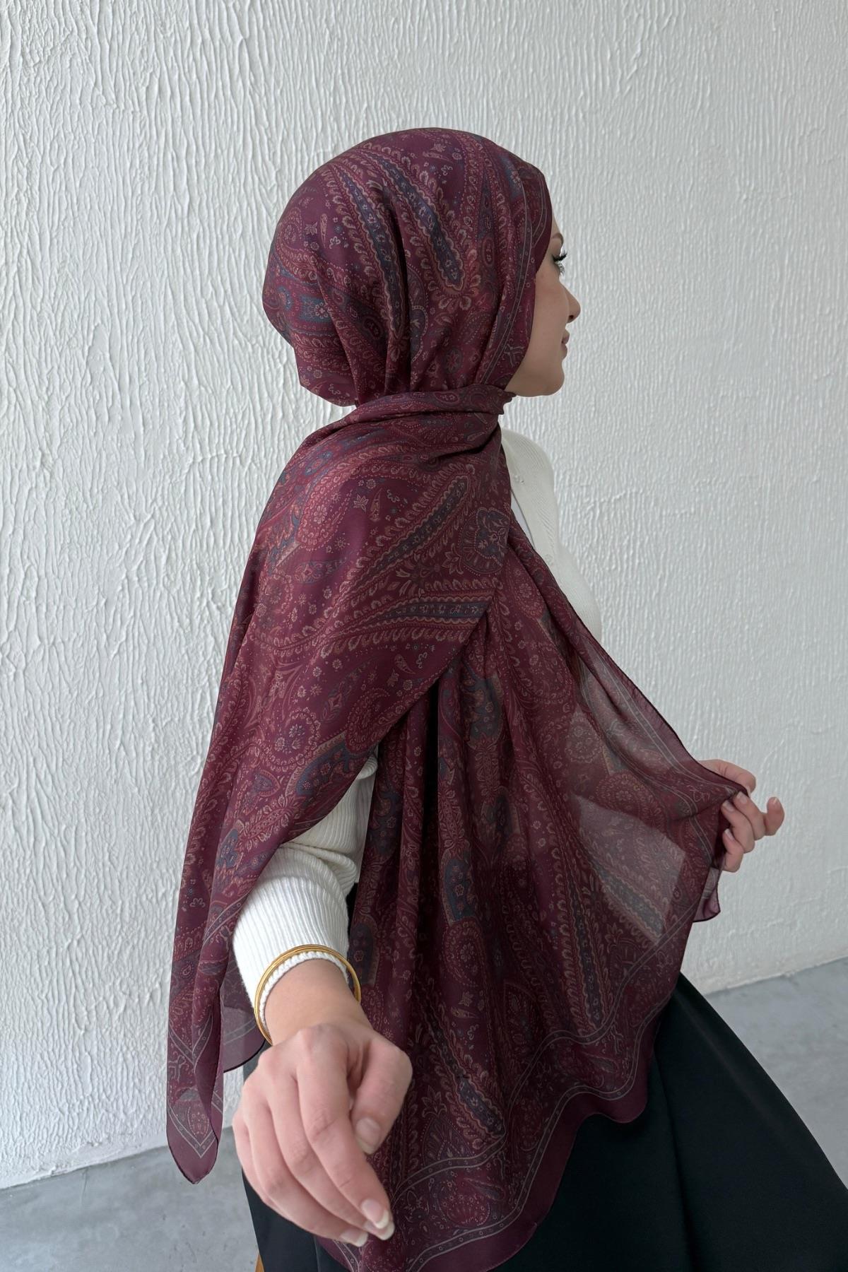 Bordo Milena Hint İpeği Şal - Eda Uzunlar modeli, Eda Uzunlar'ın tesettür koleksiyonunda modern zarafet ile sadeliği buluşturur. Özenle tasarlanmış detayları, günlük yaşamdan özel davetlere kadar her alanda şıklığı yaşamanıza olanak tanır. Nefes alabilen yapısı, rahat kalıbı ve stil sahibi çizgileri ile hem konforlu hem de zarif bir kullanım sunar. Kumaş kalitesi, Eda Uzunlar farkıyla bir üst seviyeye taşınır. Tesettür giyimde stilini yansıtmak isteyen kadınlar için ideal bir tercihtir. Koleksiyonun her bir parçası, zamansız şıklığın temsilcisidir ve her kombine değer katar. Şıklığı detaylarda arayanlara özel bu ürün, Eda Uzunlar estetiğini dolabınıza taşır.