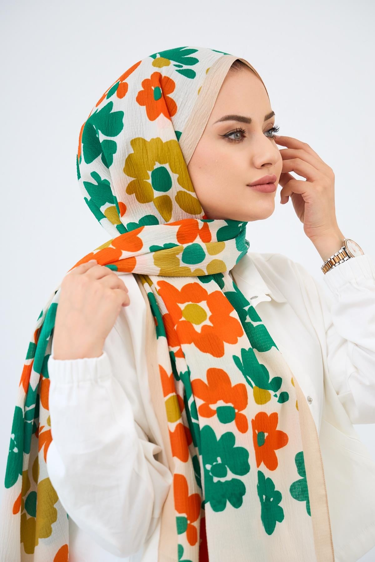 Çiçek Desen Naturel Şal Renkli - Eda Uzunlar modeli, Eda Uzunlar'ın tesettür koleksiyonunda modern zarafet ile sadeliği buluşturur. Özenle tasarlanmış detayları, günlük yaşamdan özel davetlere kadar her alanda şıklığı yaşamanıza olanak tanır. Nefes alabilen yapısı, rahat kalıbı ve stil sahibi çizgileri ile hem konforlu hem de zarif bir kullanım sunar. Kumaş kalitesi, Eda Uzunlar farkıyla bir üst seviyeye taşınır. Tesettür giyimde stilini yansıtmak isteyen kadınlar için ideal bir tercihtir. Koleksiyonun her bir parçası, zamansız şıklığın temsilcisidir ve her kombine değer katar. Şıklığı detaylarda arayanlara özel bu ürün, Eda Uzunlar estetiğini dolabınıza taşır.