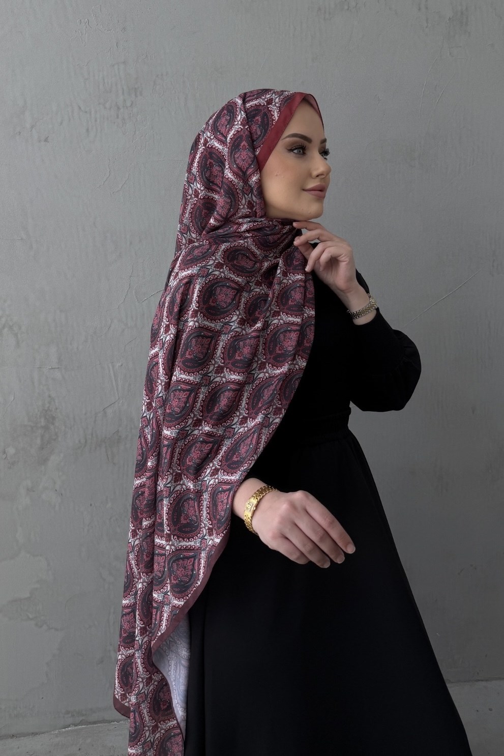 Bordo Nazende Bohem Modal İpek Şal (EU-0469)