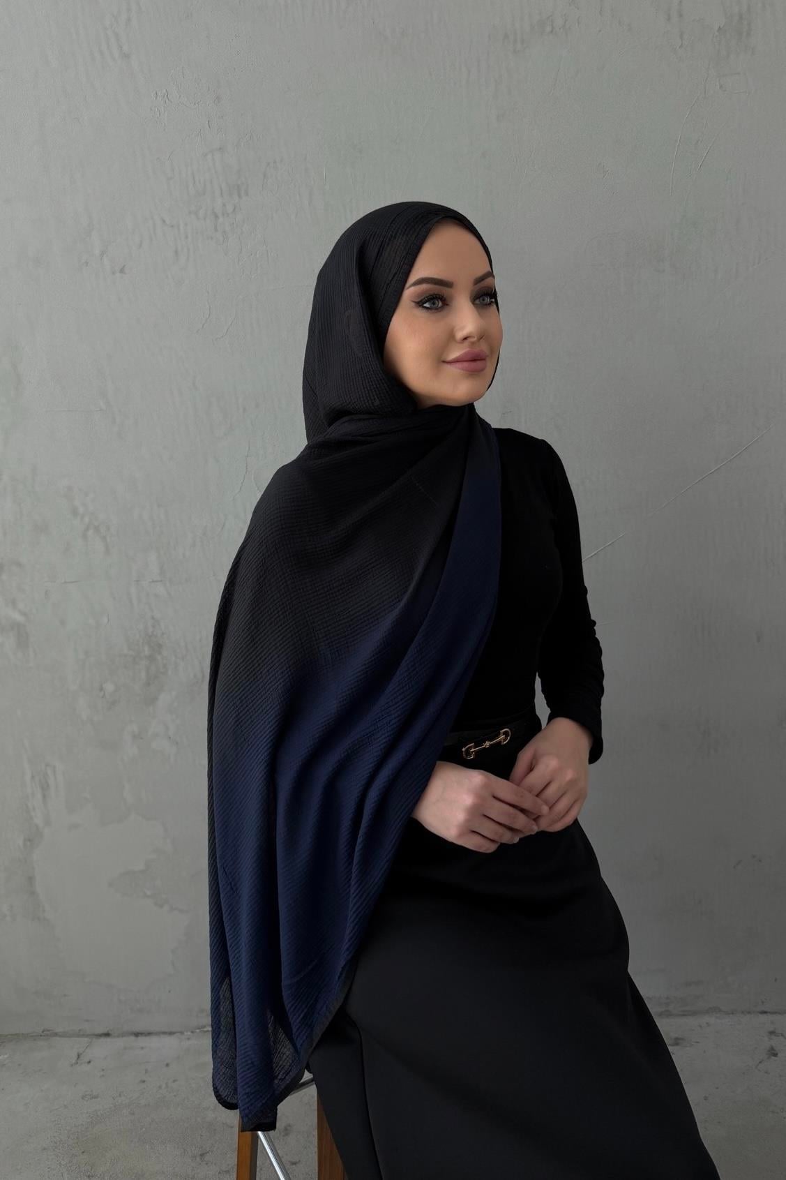 Navy Blue Black Gradient Imported Muslin Scarf (EU-0690)