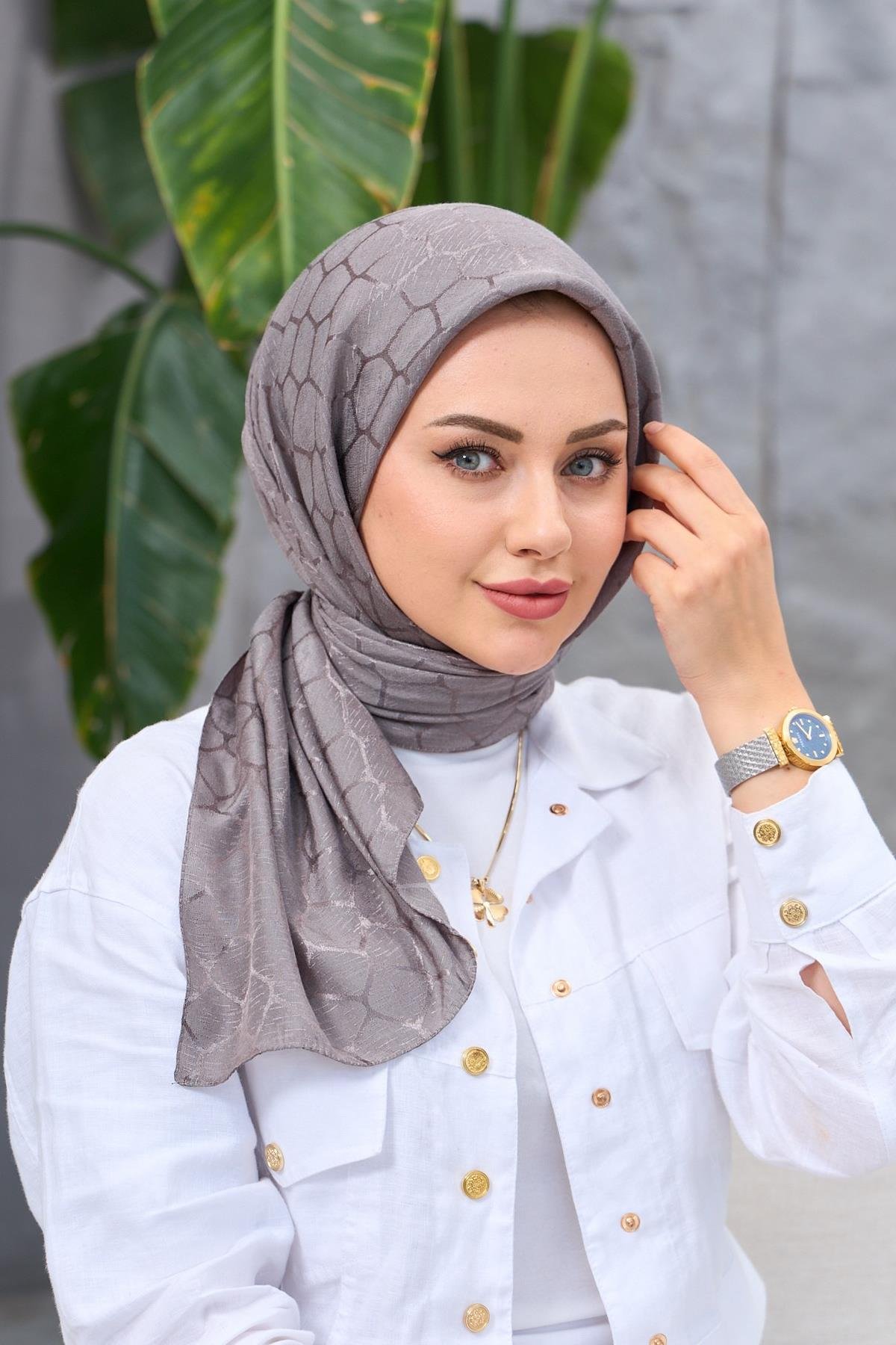 Mineral Gray Stone Pattern Silky Jacquard Scarf