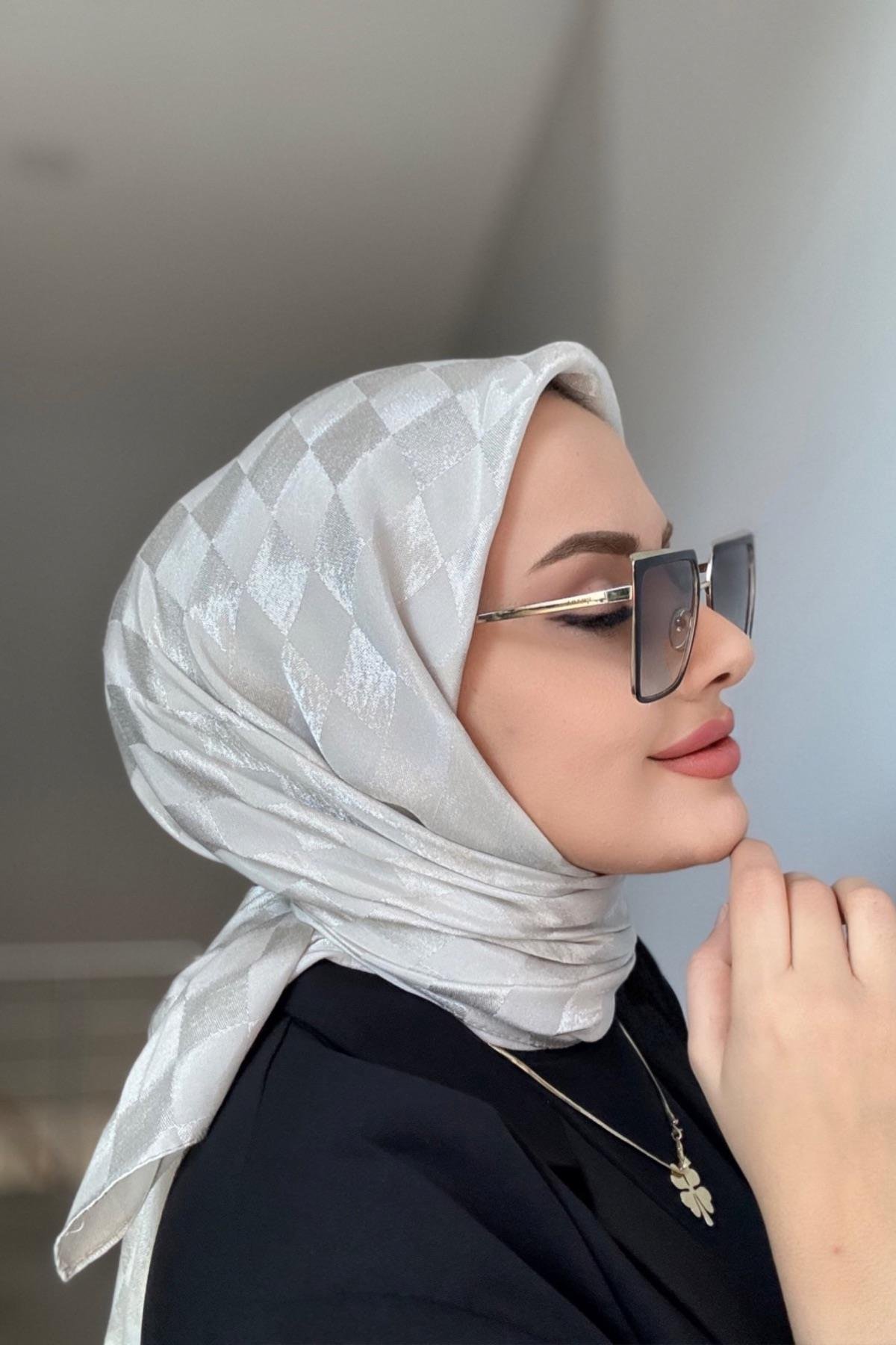 Checkerboard Pattern Cotton Jacquard Scarf Models