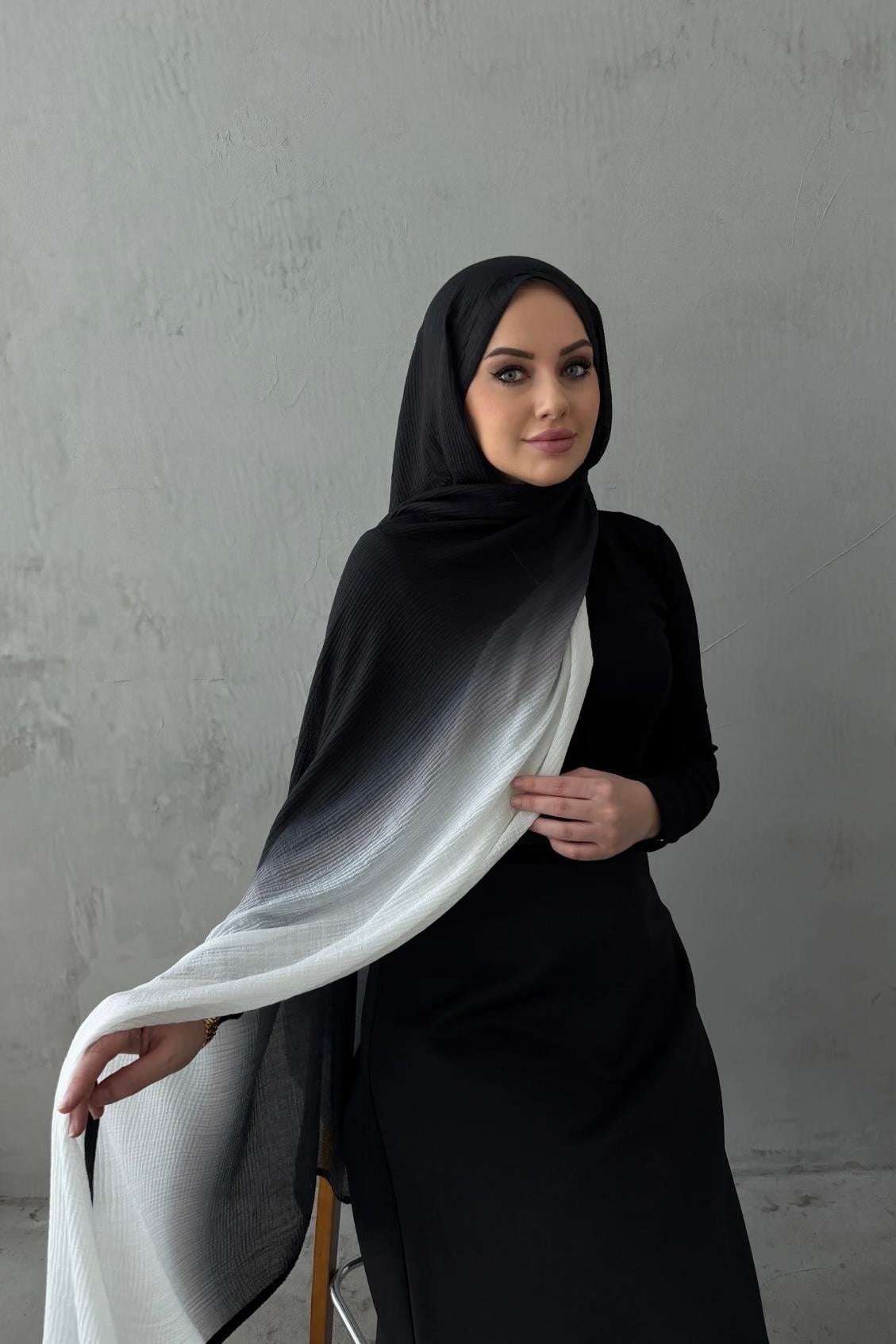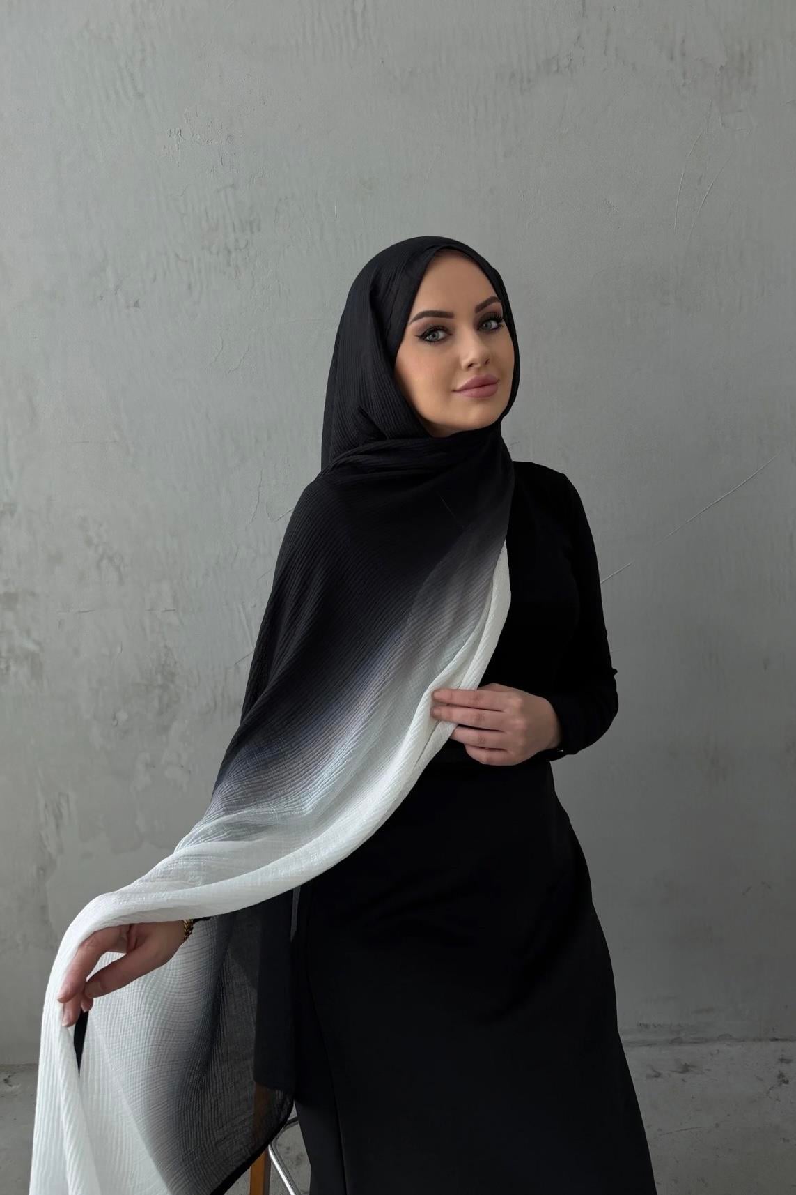 Black Gradient Imported Muslin Scarf (EU-0690)
