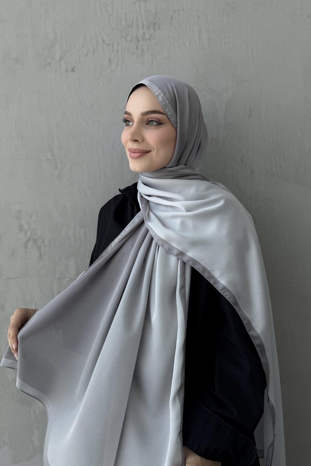 Gri Degrade Kumlu İpek Şal (EU-0618)