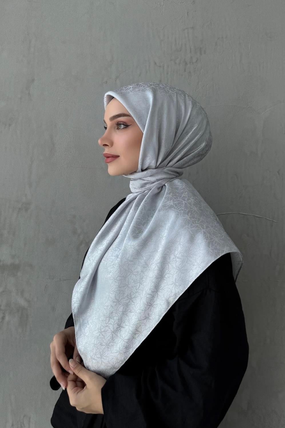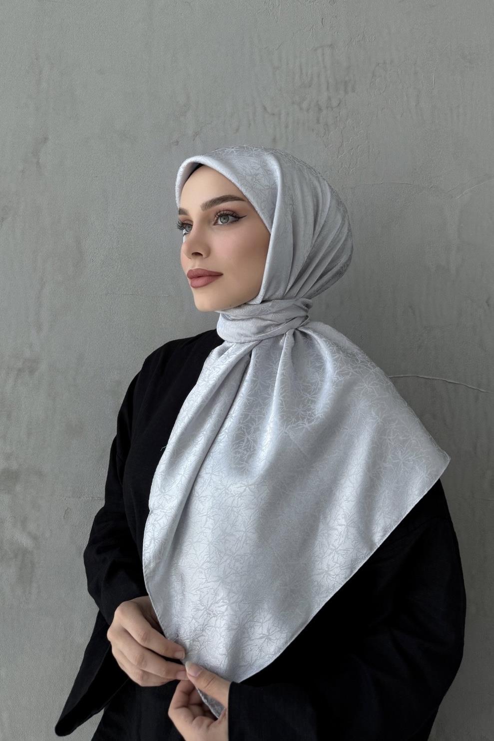 Gümüş Gri Çiçek Jakar Eşarp (EU-0622)