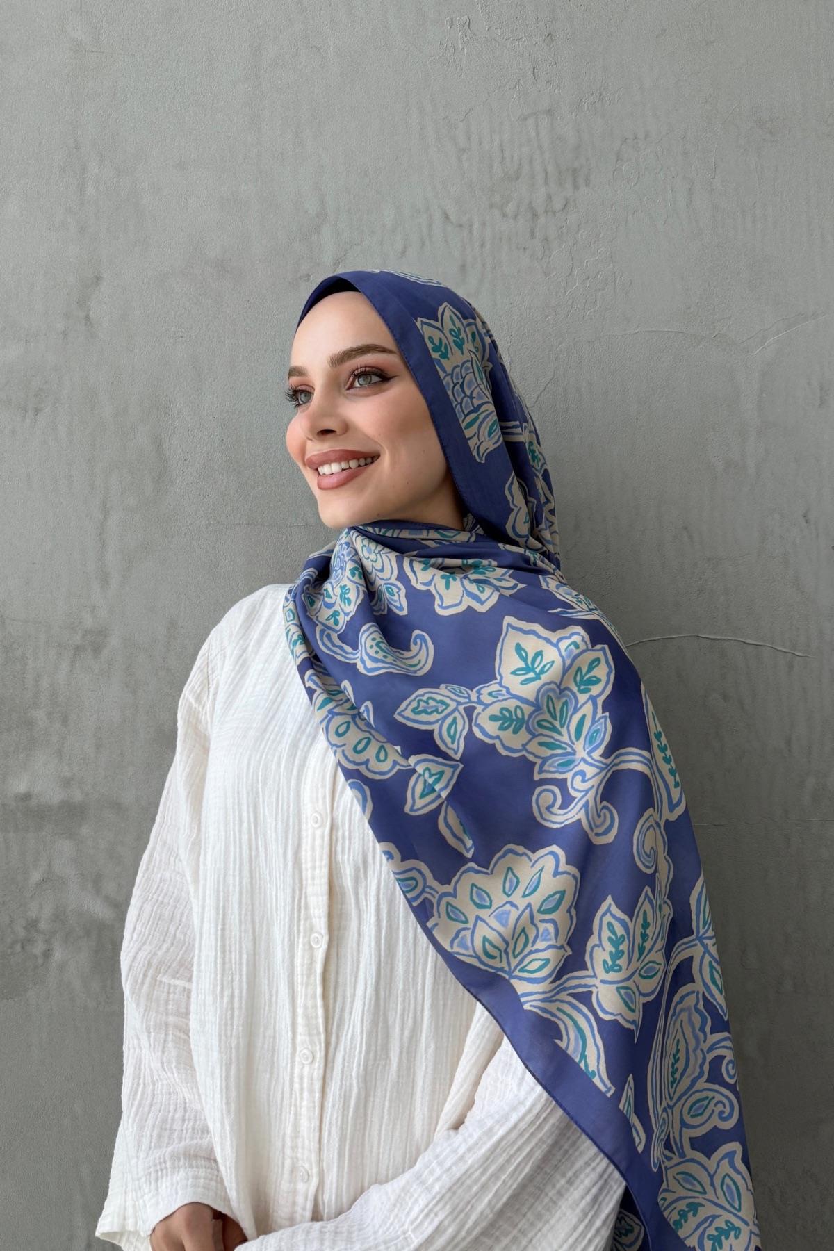 İndigo Gardenia Modal İpek Şal (EU-0605)