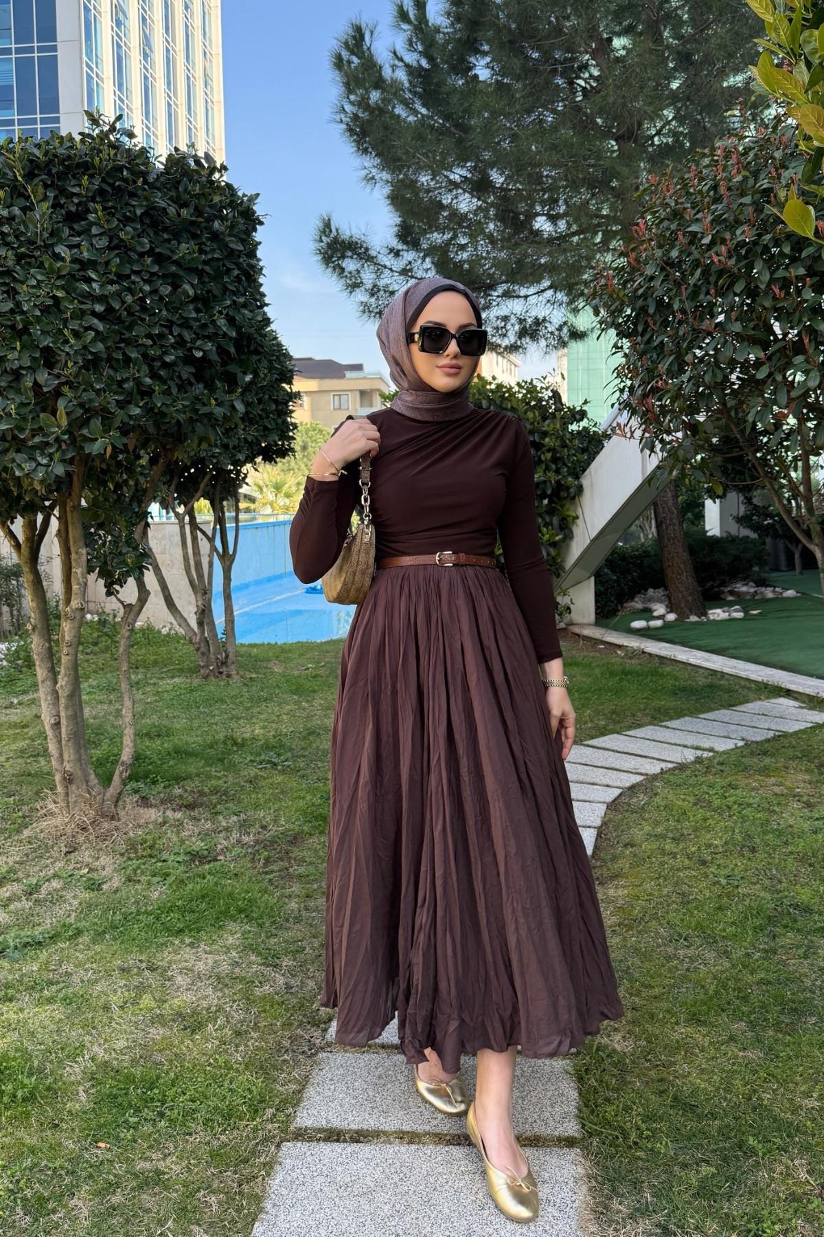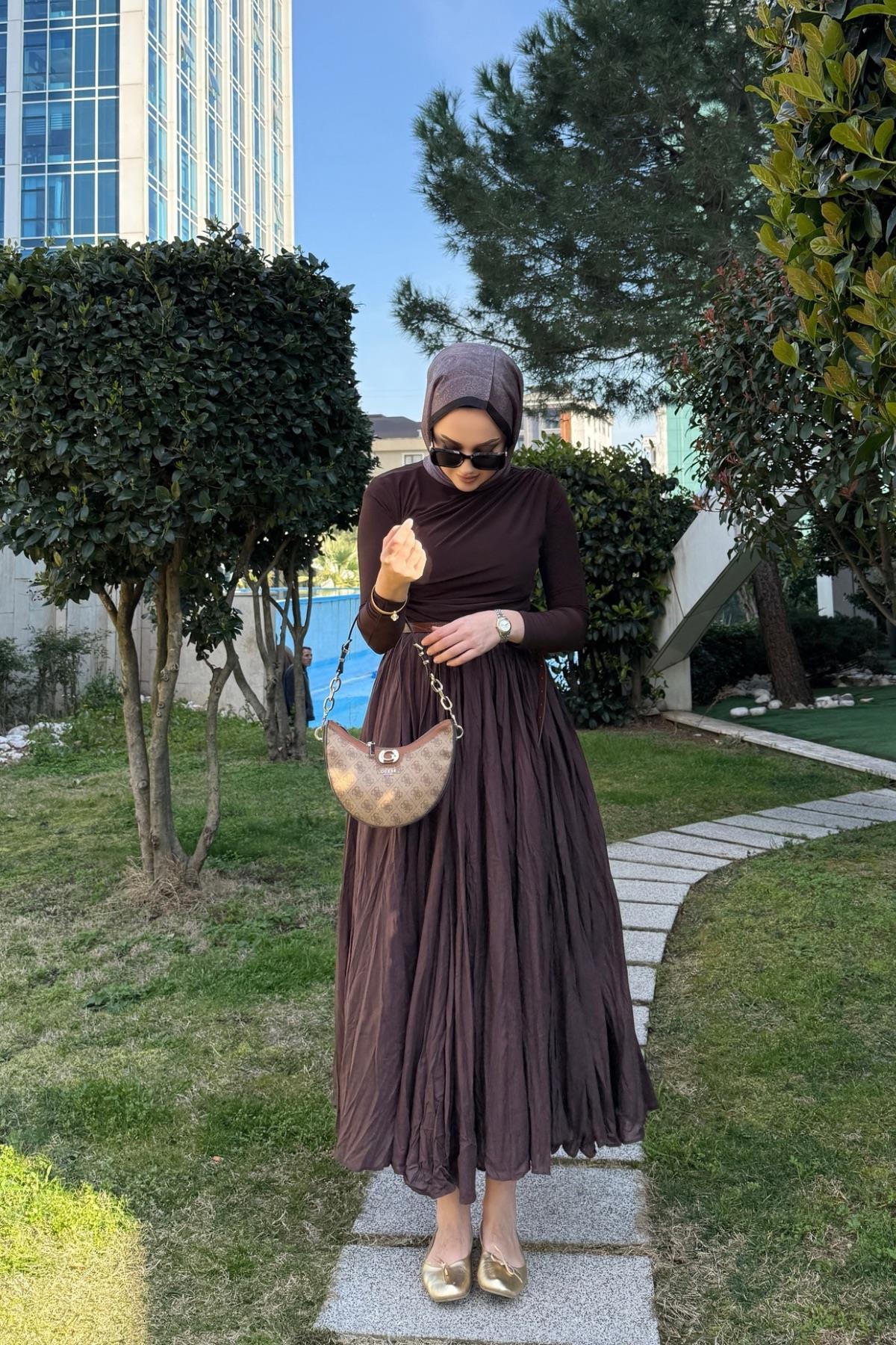 Kahverengi Crash Etek - Eda Uzunlar modeli, Eda Uzunlar'ın tesettür koleksiyonunda modern zarafet ile sadeliği buluşturur. Özenle tasarlanmış detayları, günlük yaşamdan özel davetlere kadar her alanda şıklığı yaşamanıza olanak tanır. Nefes alabilen yapısı, rahat kalıbı ve stil sahibi çizgileri ile hem konforlu hem de zarif bir kullanım sunar. Kumaş kalitesi, Eda Uzunlar farkıyla bir üst seviyeye taşınır. Tesettür giyimde stilini yansıtmak isteyen kadınlar için ideal bir tercihtir. Koleksiyonun her bir parçası, zamansız şıklığın temsilcisidir ve her kombine değer katar. Şıklığı detaylarda arayanlara özel bu ürün, Eda Uzunlar estetiğini dolabınıza taşır.