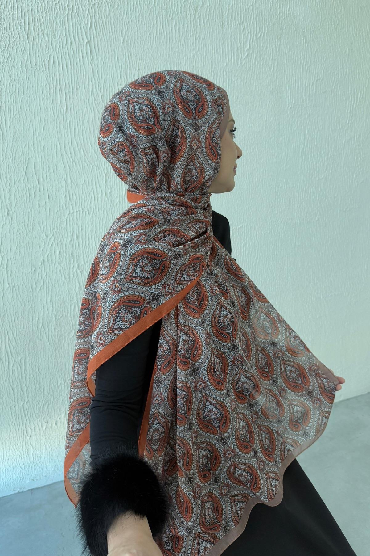 Kiremit Nazende Bohem Modal İpek Şal - Eda Uzunlar modeli, Eda Uzunlar'ın tesettür koleksiyonunda modern zarafet ile sadeliği buluşturur. Özenle tasarlanmış detayları, günlük yaşamdan özel davetlere kadar her alanda şıklığı yaşamanıza olanak tanır. Nefes alabilen yapısı, rahat kalıbı ve stil sahibi çizgileri ile hem konforlu hem de zarif bir kullanım sunar. Kumaş kalitesi, Eda Uzunlar farkıyla bir üst seviyeye taşınır. Tesettür giyimde stilini yansıtmak isteyen kadınlar için ideal bir tercihtir. Koleksiyonun her bir parçası, zamansız şıklığın temsilcisidir ve her kombine değer katar. Şıklığı detaylarda arayanlara özel bu ürün, Eda Uzunlar estetiğini dolabınıza taşır.