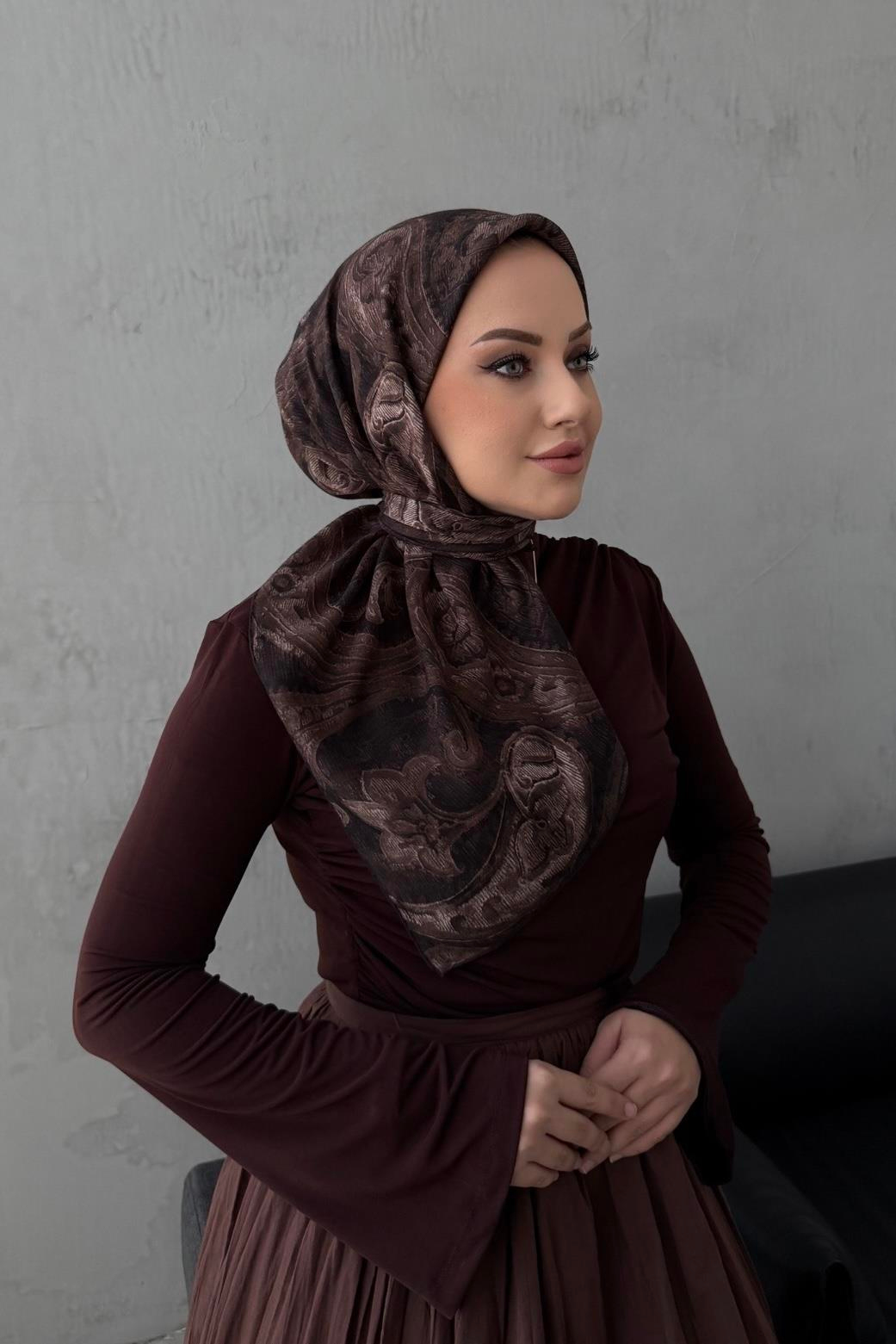 Koyu Kahverengi Perlina Koza Pamuk Eşarp