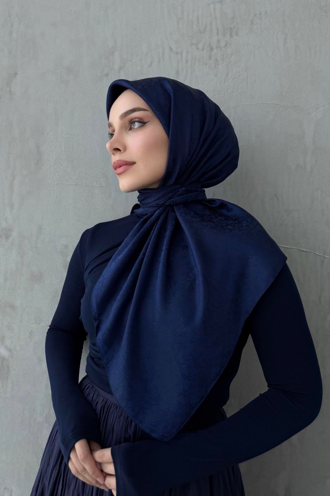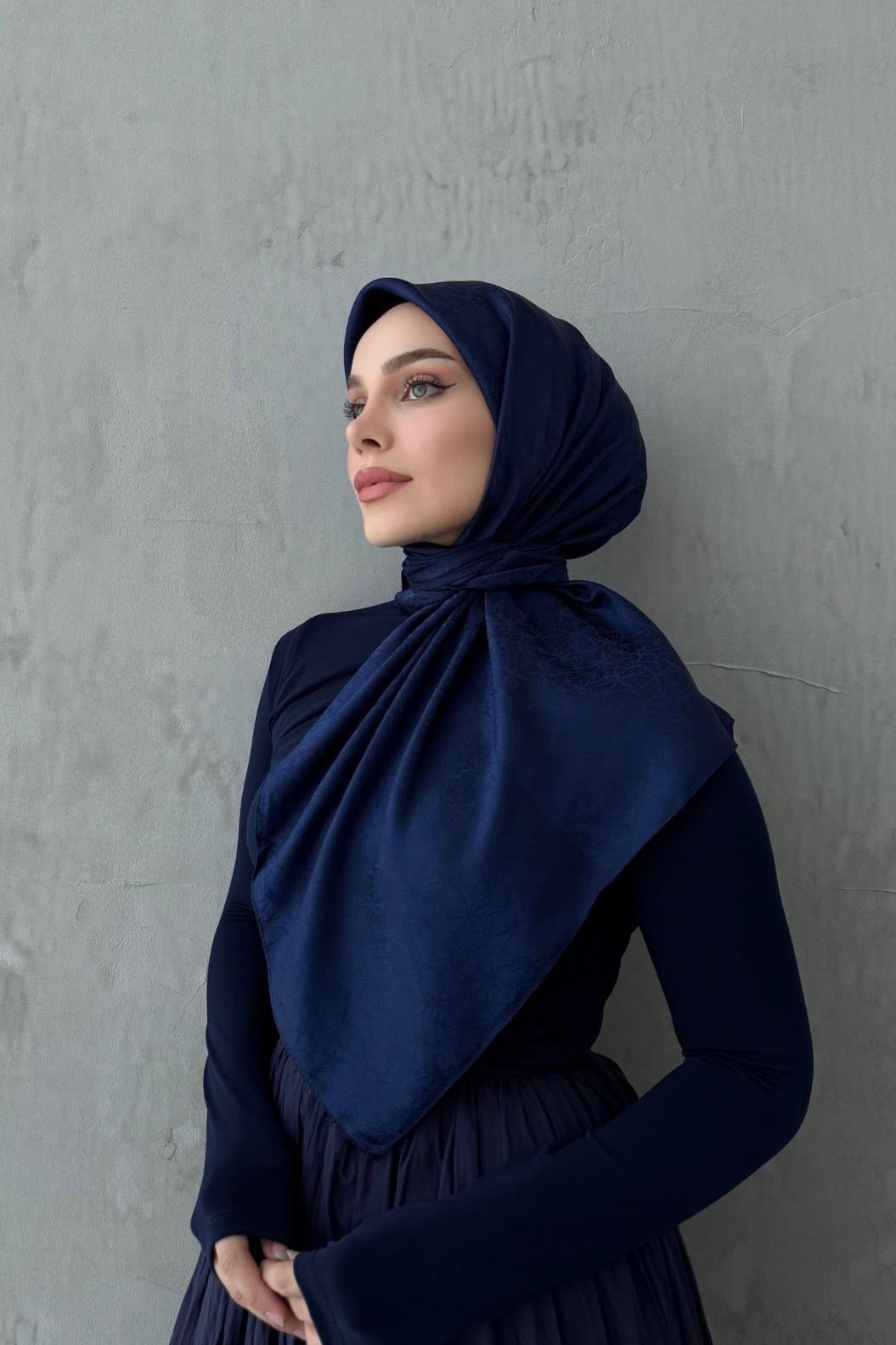 Lacivert Çiçek Jakar Eşarp (EU-0622)