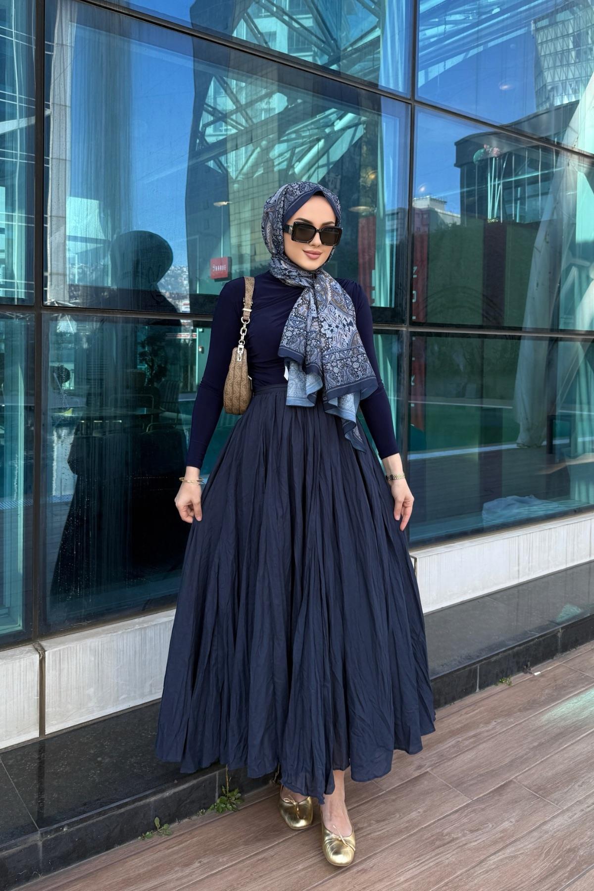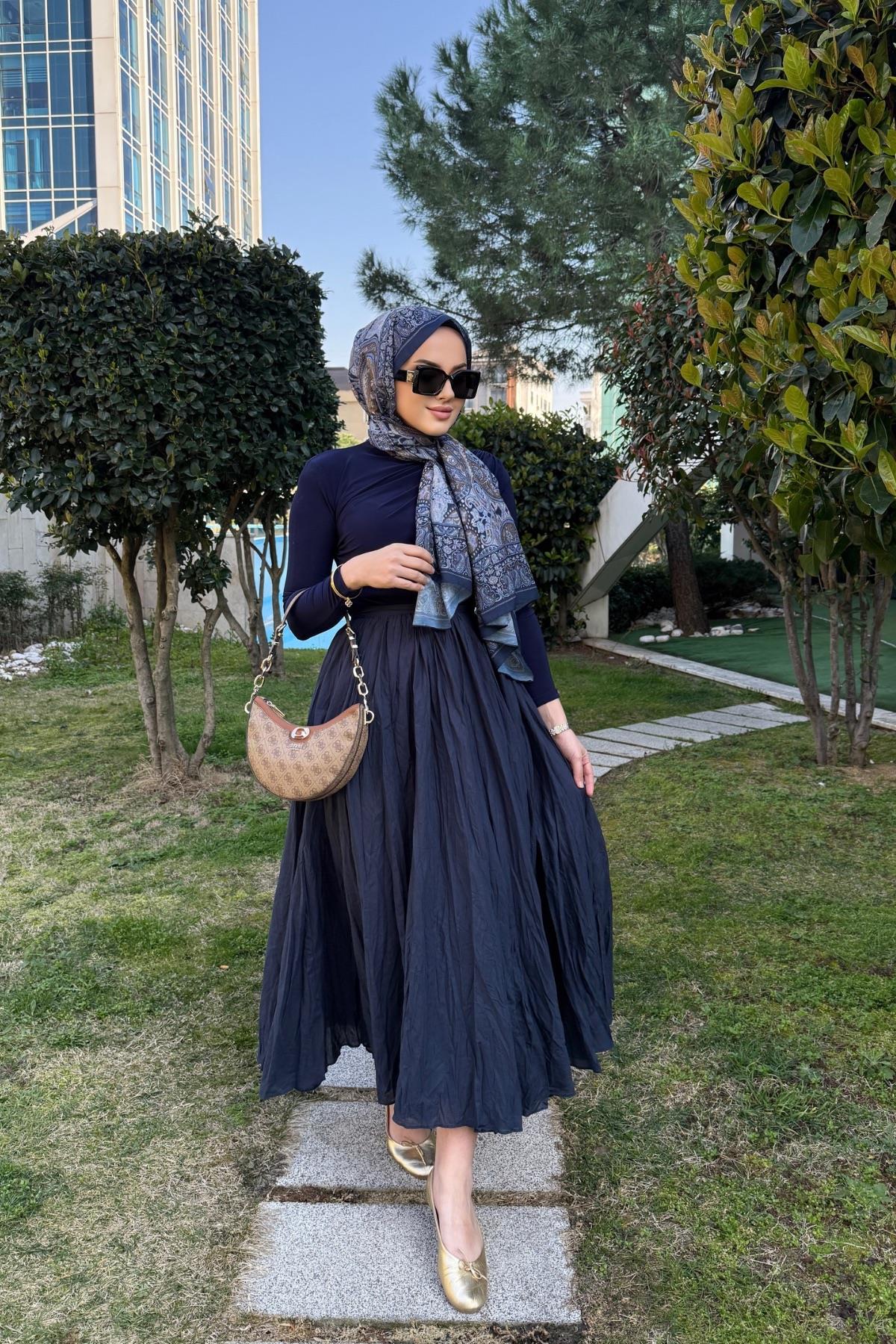 Lacivert Crash Etek - Eda Uzunlar modeli, Eda Uzunlar'ın tesettür koleksiyonunda modern zarafet ile sadeliği buluşturur. Özenle tasarlanmış detayları, günlük yaşamdan özel davetlere kadar her alanda şıklığı yaşamanıza olanak tanır. Nefes alabilen yapısı, rahat kalıbı ve stil sahibi çizgileri ile hem konforlu hem de zarif bir kullanım sunar. Kumaş kalitesi, Eda Uzunlar farkıyla bir üst seviyeye taşınır. Tesettür giyimde stilini yansıtmak isteyen kadınlar için ideal bir tercihtir. Koleksiyonun her bir parçası, zamansız şıklığın temsilcisidir ve her kombine değer katar. Şıklığı detaylarda arayanlara özel bu ürün, Eda Uzunlar estetiğini dolabınıza taşır.