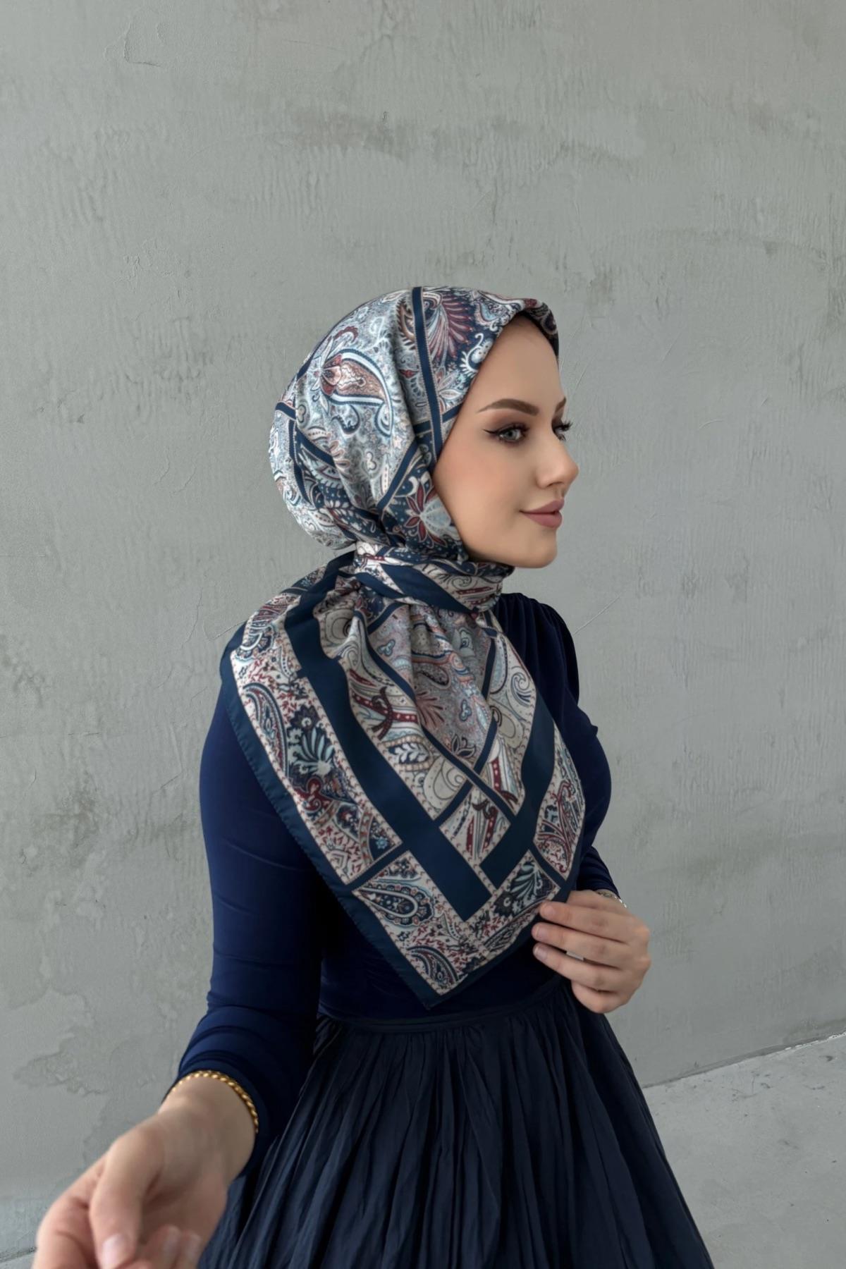 Lacivert&Bordo Aydilge Bohem Modal İpek Eşarp (EU-0495)