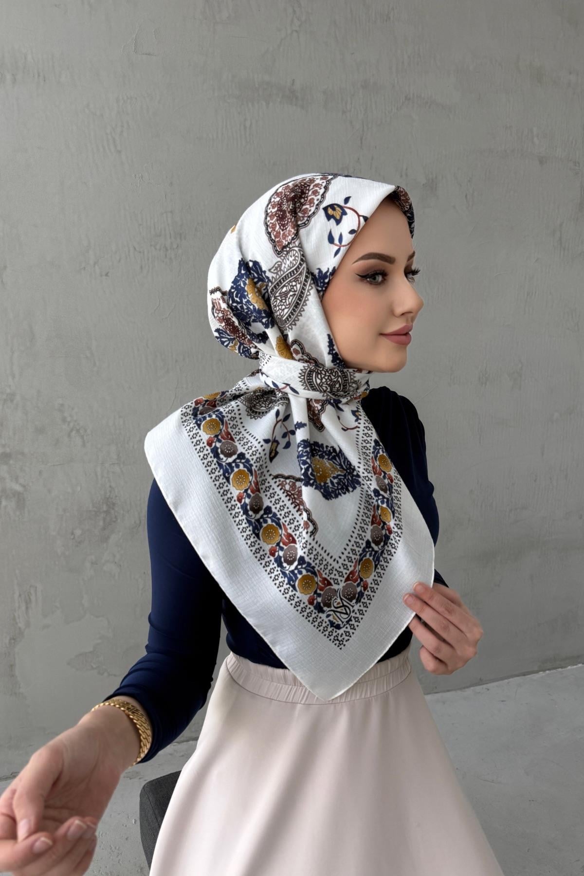 Lacivert&Ekru Masalsu Naturel Eşarp (EU-0509)