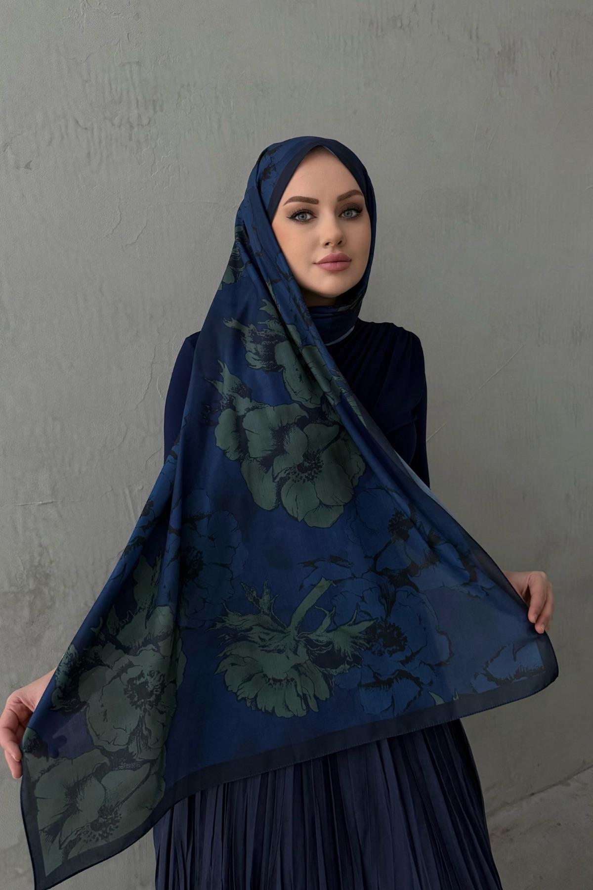 LacivertYeşil Kayla Modal İpek Şal (EU-0669)