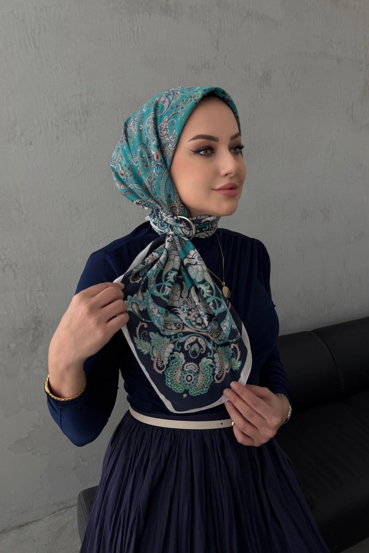 Mavi İnci Bohem Modal İpek Eşarp