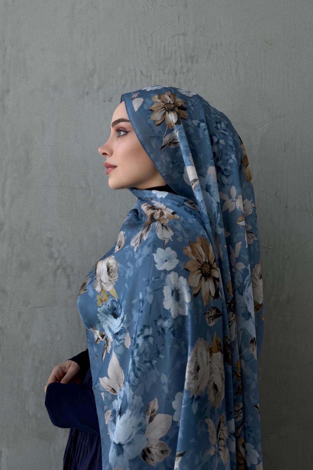 Mavi Roselle Hint İpeği Şal (EU-0624)
