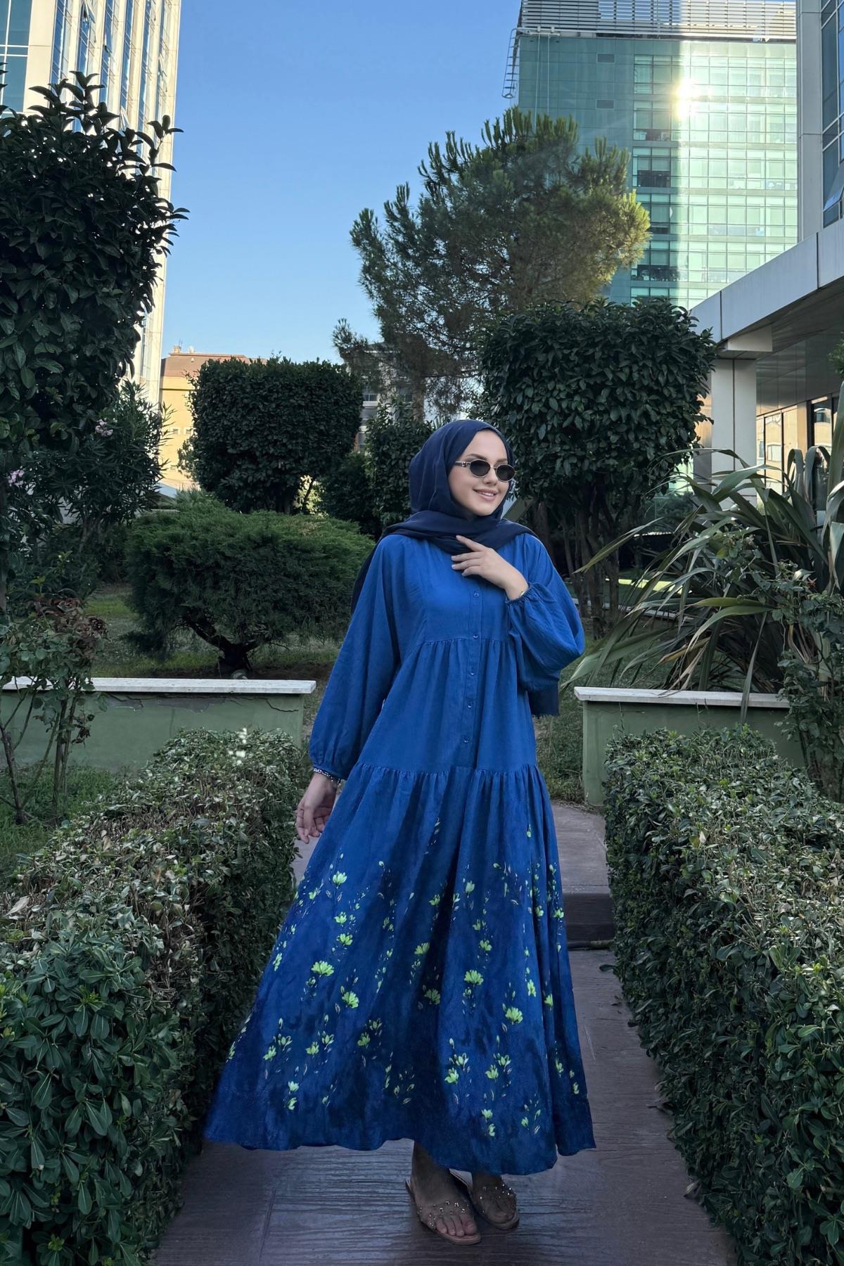 Mehtap Pamuk Vual Elbise Mavi (EU-0604)