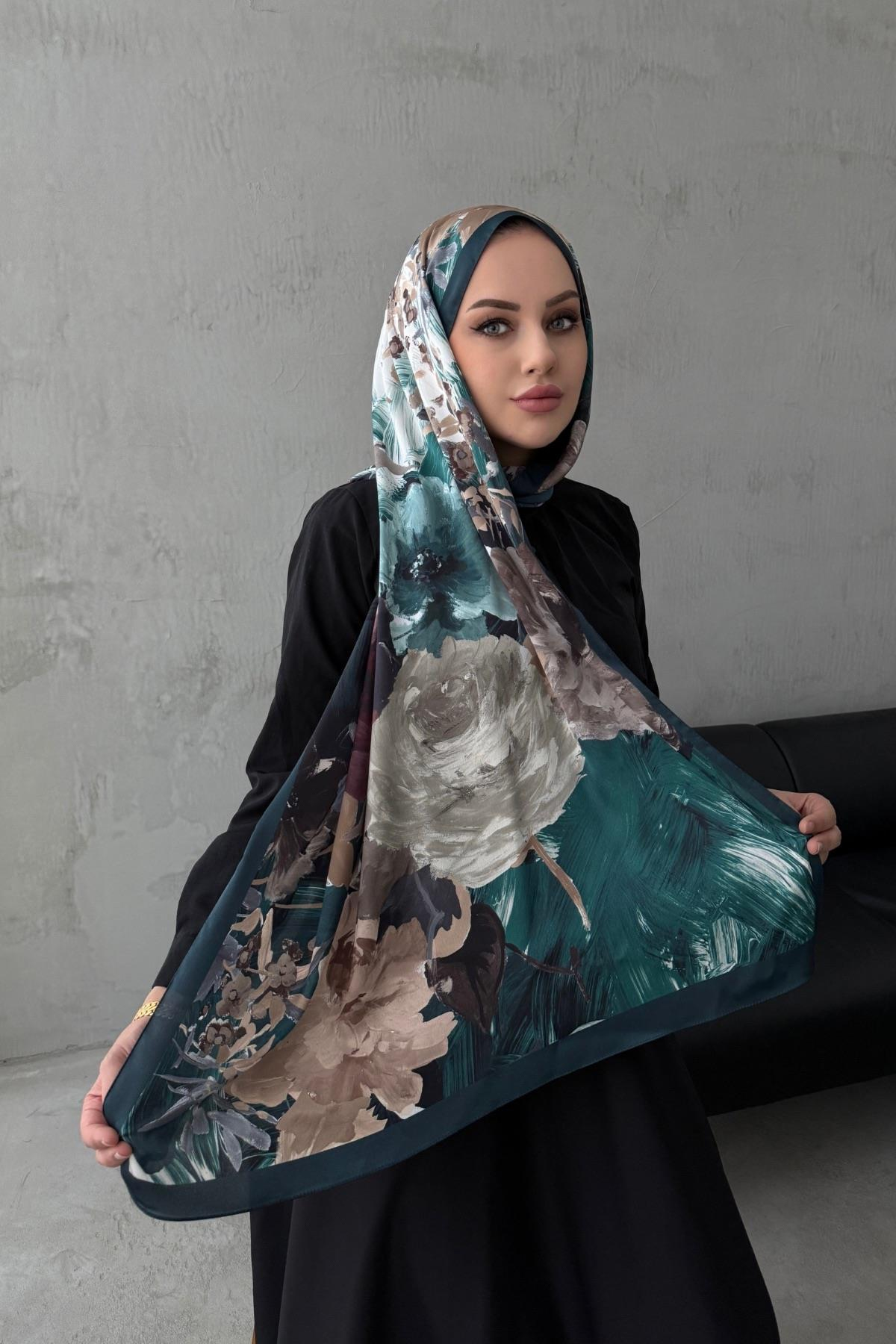 Petrol Lara Kumlu İpek Şal (EU-0650)