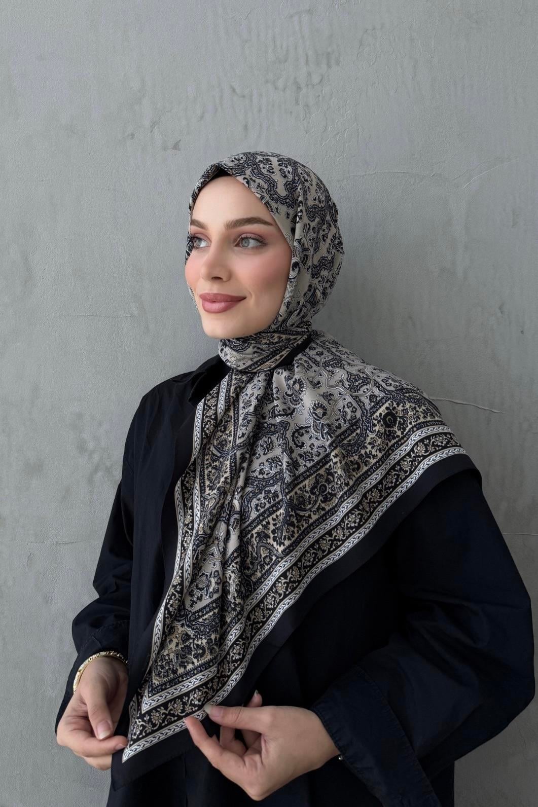Siyah&Bej Bohem Modal İpek Eşarp (EU-0466)