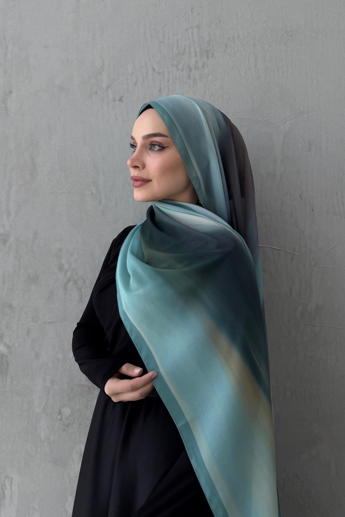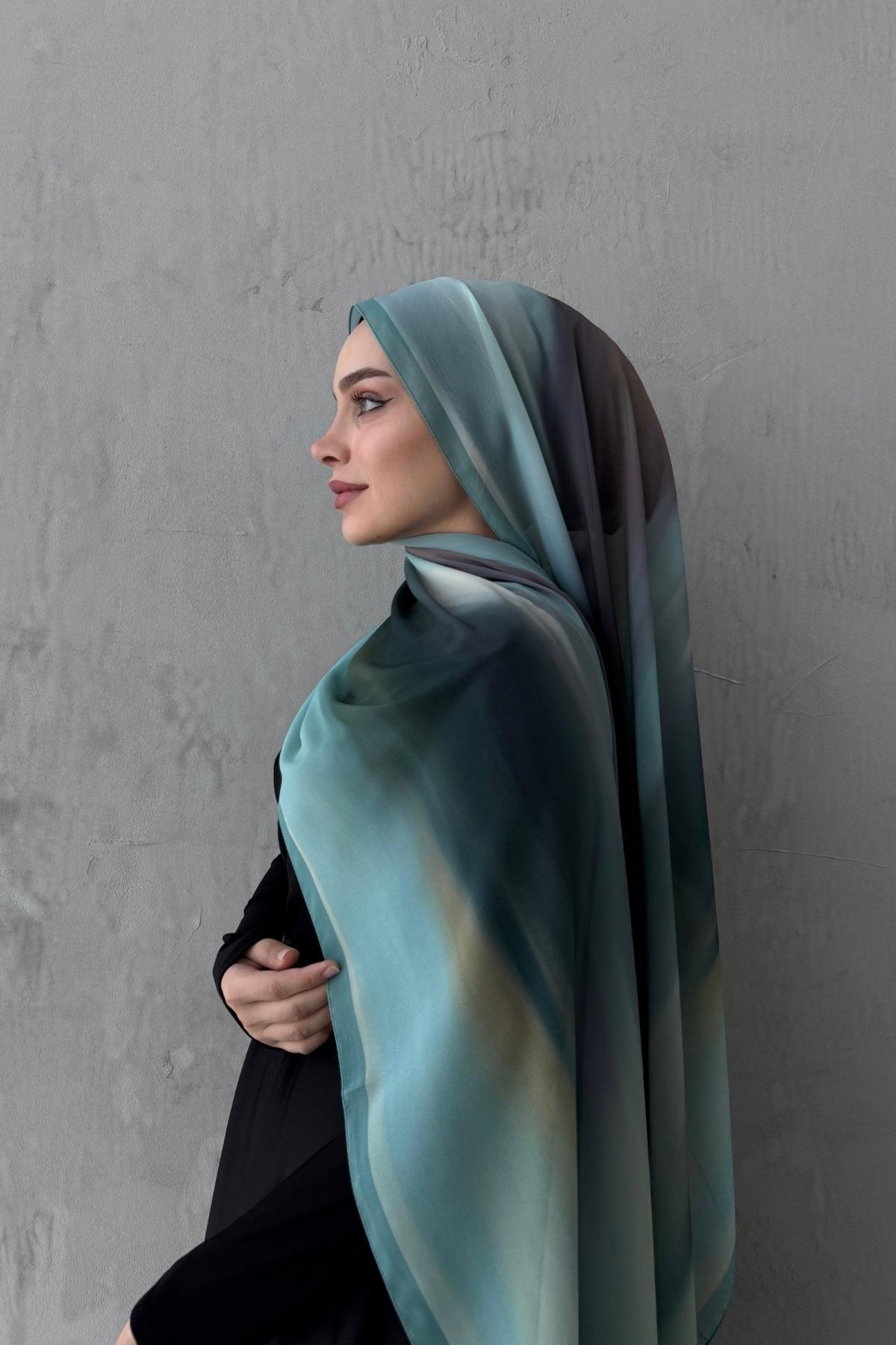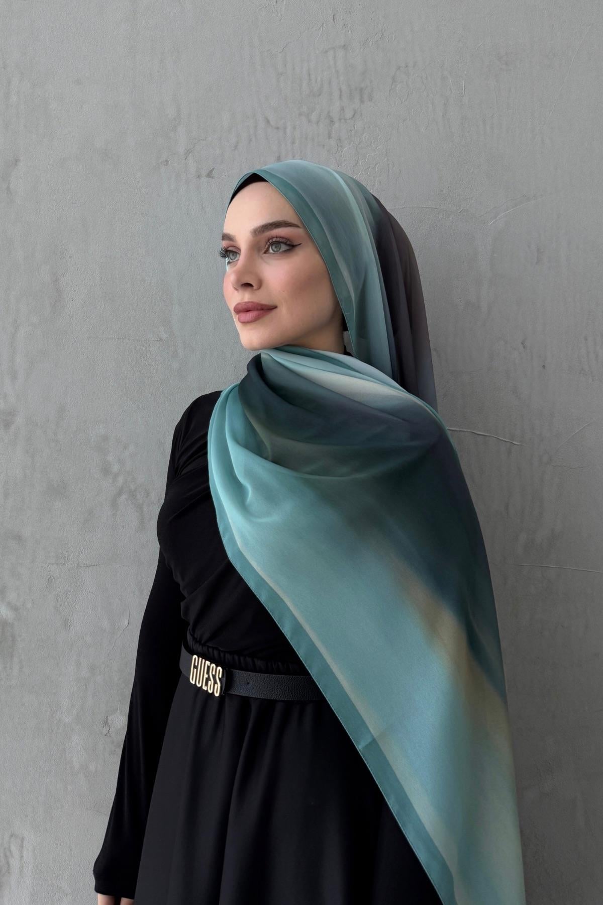 Turkuaz Feerla Kumlu İpek Şal (EU-0623)