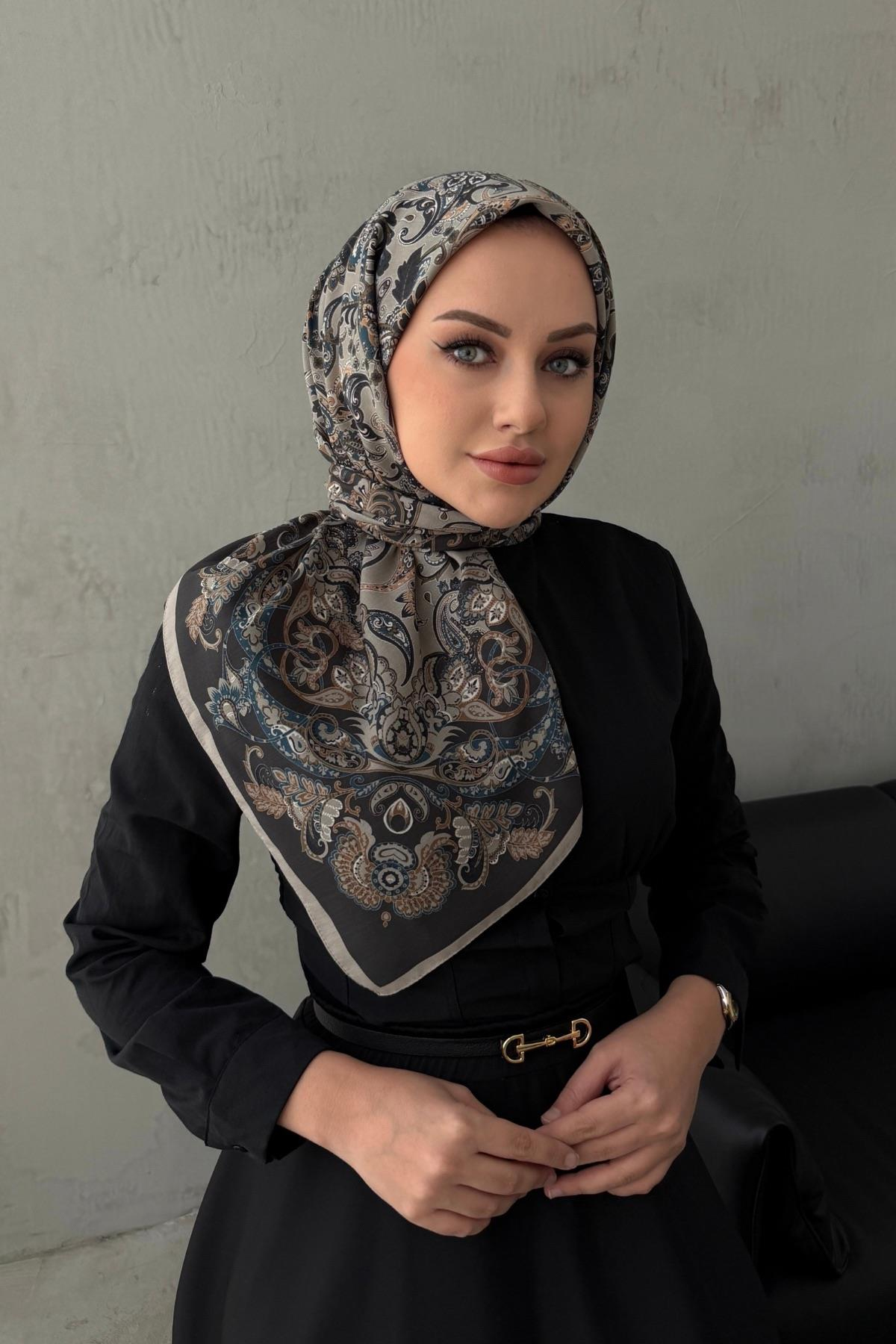 VizonSiyah İnci Bohem Modal İpek Eşarp