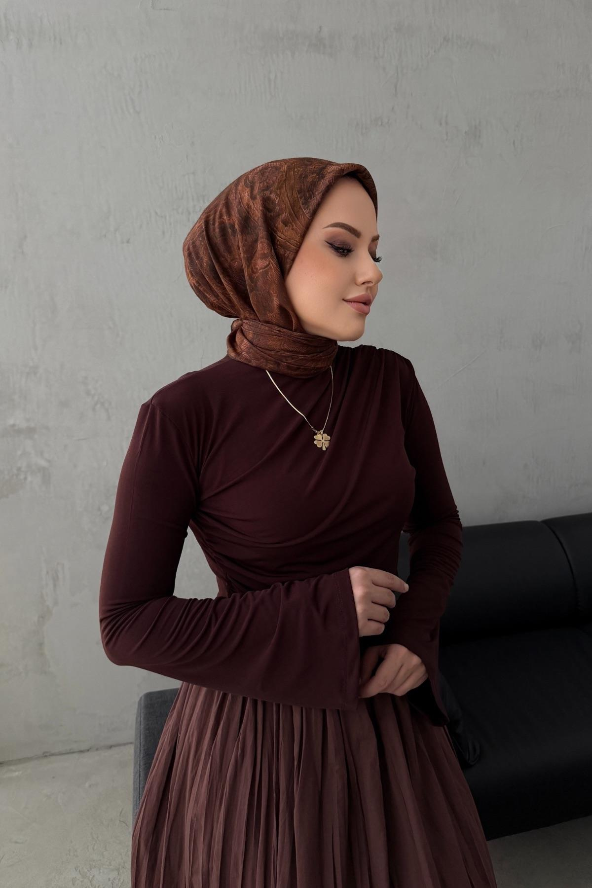 Volan Kol Kahverengi Drape Badi ( S-M-L) Uyumlu