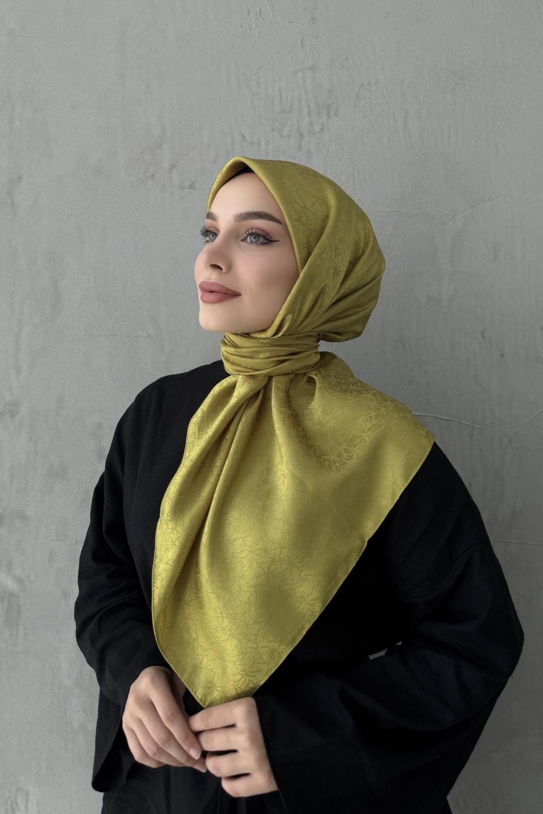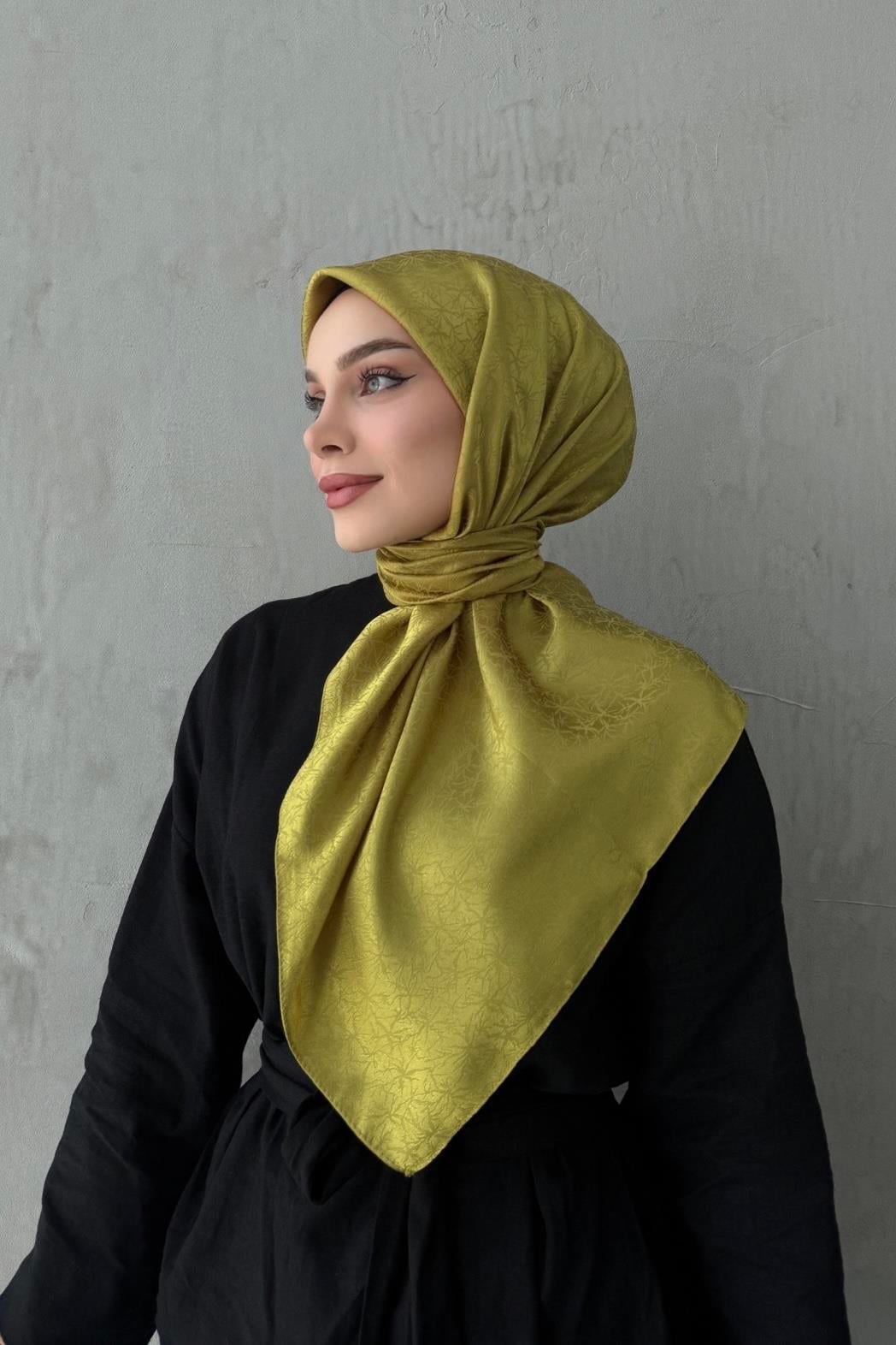Yağ Yeşili Çiçek Jakar Eşarp (EU-0622)